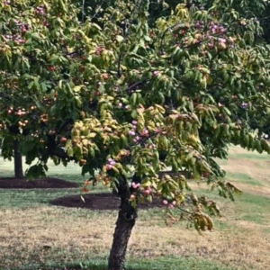Compact and ornamental, this is the common wild plum that grows from Missouri and eastern Kansas to Texas. The small fruit is generally ready to harvest in September and eaten fresh or as preserves. Tip: Wait until fruit is falling off the tree before picking.
